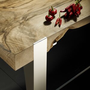 Formidabile esempio di ulivo risalente al XVI Secolo. Seduta con venature e sfumature di altissimo impatto visivo, siede su gamba in acciaio inox spessore 10mm lucidato a specchio, quest'ultima è l'esatta copia dell'altra sua gamba in ulivo. Questo formidabile legno vanta un'incredibile essiccazione naturale di ben 22 anni. Finitura a cera naturale stesa a mano