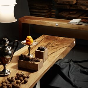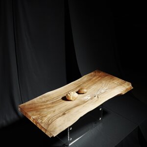 Noce nostrano di provenienza piemontese, la sua eta' di 400/500 anni, il suo spessore di 9 cm , la sua estensione di 218 cm, la sua profondita' di 105 cm e un peso di 120kg lo collocano ad un livello altissimo, degno di alloggiare nelle dimore più prestigiose del mondo.