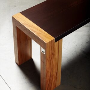 A fabulous bench with an exotic aspect, this piece has been created using one individual section of "Panga Panga" wood from the region of Enclave De Cabinda in Angola. It is supported by two legs of italian olive wood originating from the Puglia Region. Its fine finish has been polished to create a mirror- like effect.